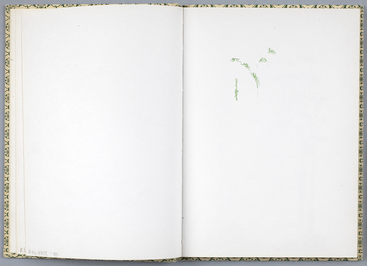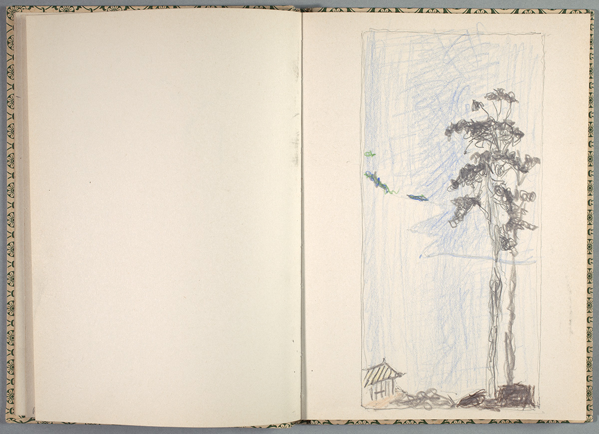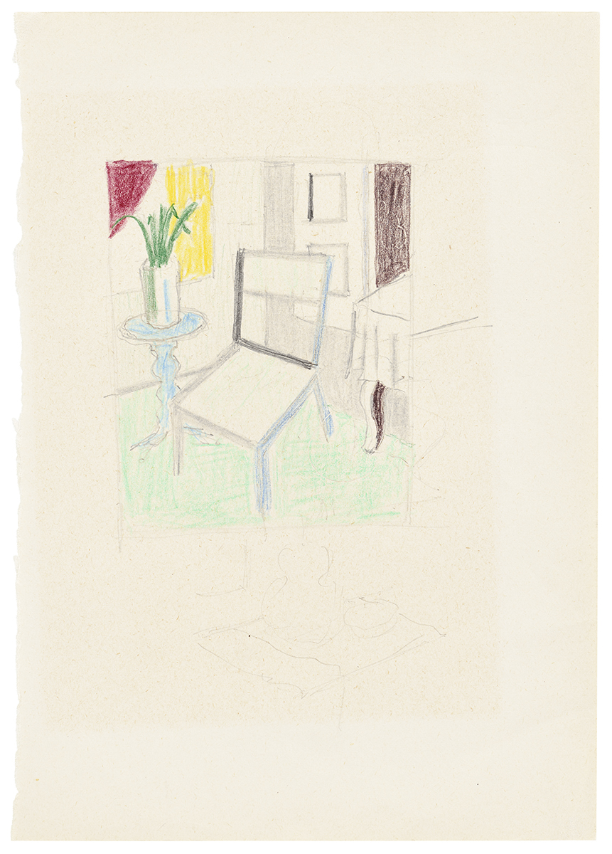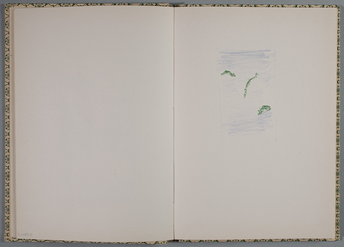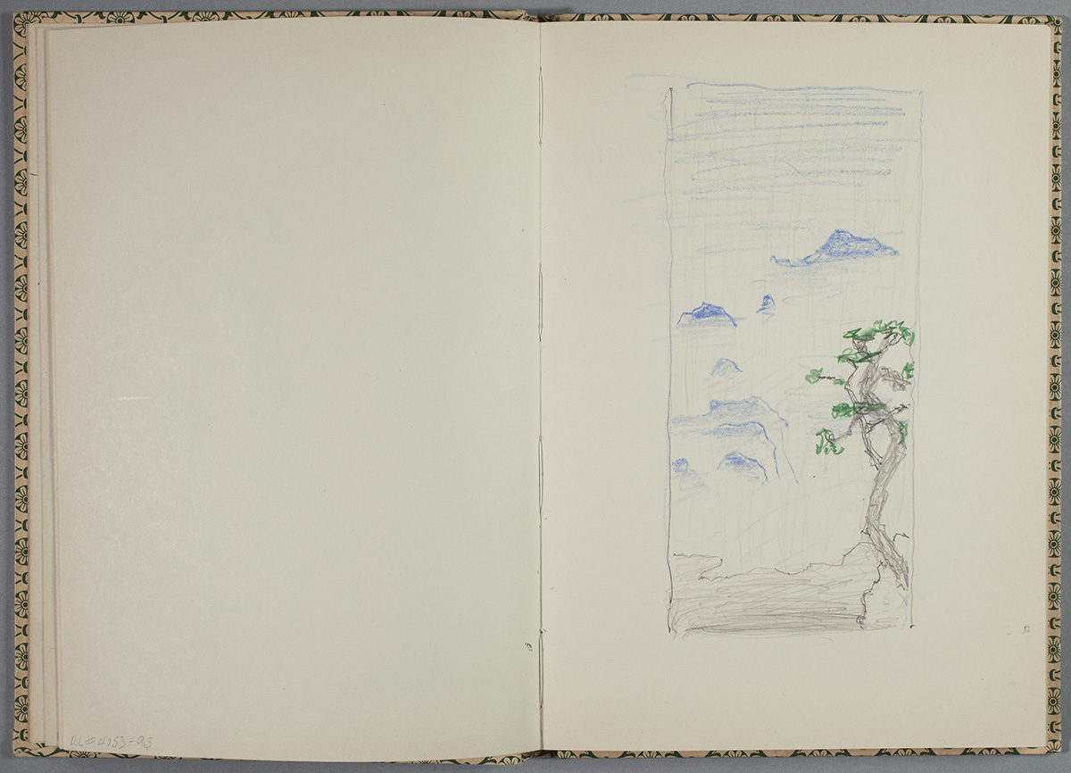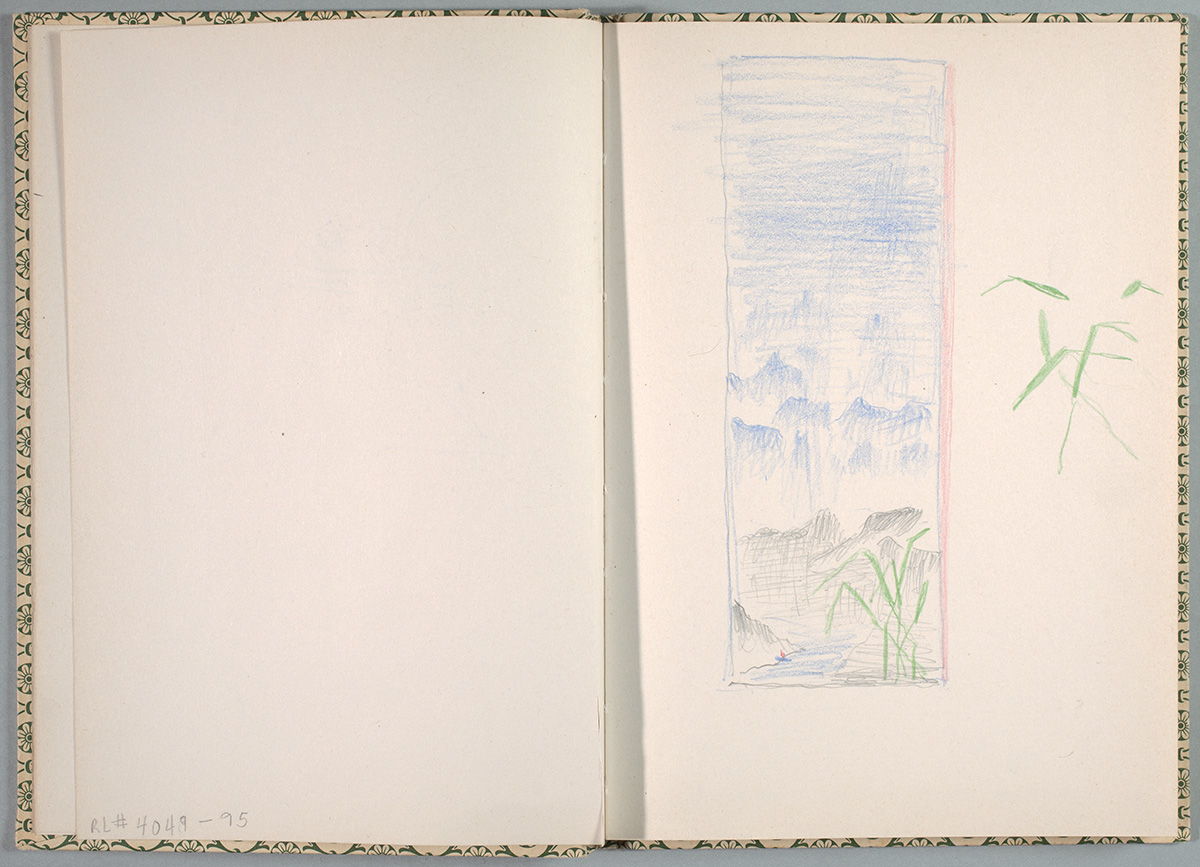 Bolder graphite lines and fill have often been confused with black colored pencil, which the artist rarely used. Thicker graphite lines sometimes suggest the use of graphite stick. Due to a lack of definite confirmation, in this catalogue, all graphite lines are categorized as graphite pencil.