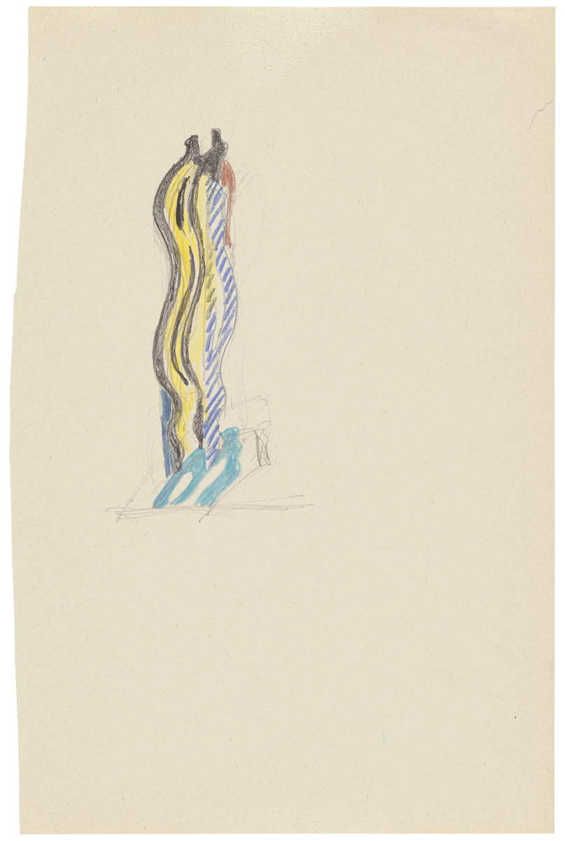 Most of Lichtenstein's known drawings were a starting point for developing ideas and compositions for paintings, sculptures and prints. In this catalogue, these drawings carry the title of the finished/final work followed by "(Study)," such as, RLCR 2560, Figures (Study). Titles of drawings with no known related final works were assigned per the methodology described in 6. TITLES.