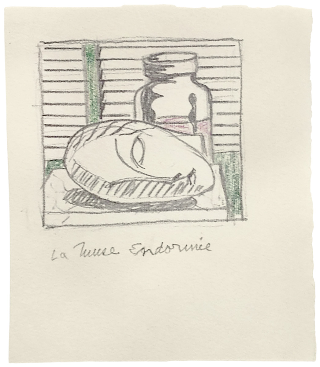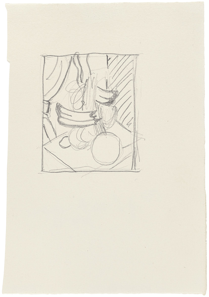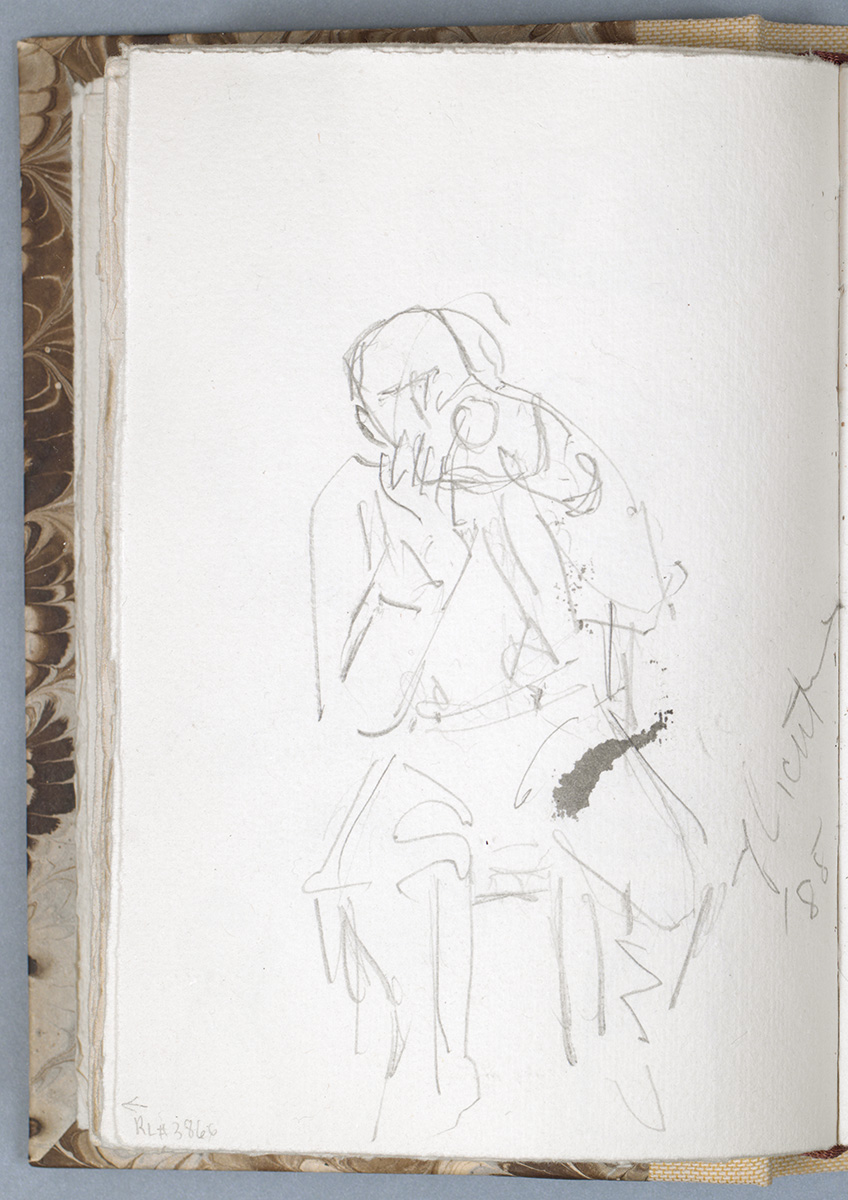 Bolder graphite lines and fill have often been confused with black colored pencil, which the artist rarely used. Thicker graphite lines sometimes suggest the use of graphite stick. Due to a lack of definite confirmation, in this catalogue, all graphite lines are categorized as graphite pencil.