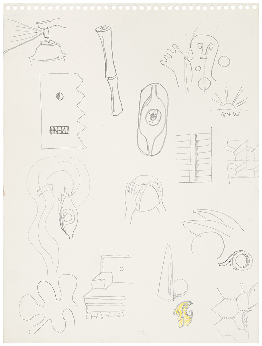 Alternate titles and sources: Mural with Blue Brushstrokes – Studies (RL Studio Card); Studies for Mural with Blue Brushstroke (RLF); Untitled (Various Sketches: Prep for Mural with Blue Brushstroke) (RL Studio Photograph)