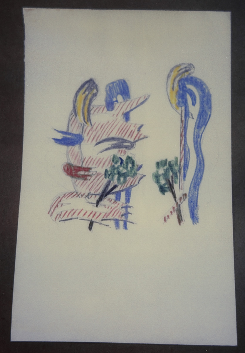 In a couple of early drawings, Lichtenstein applied an unknown resinous substance listed as resin in the entries.