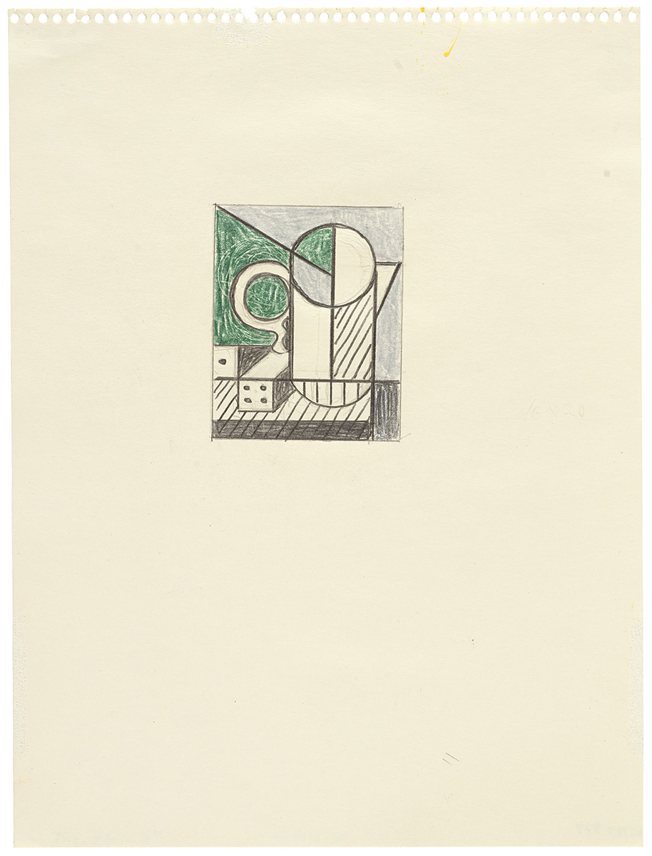 Formerly in sketchbook (nonextant), Purist Painting with Dice (Study), 1975 (RLCR 2391)
