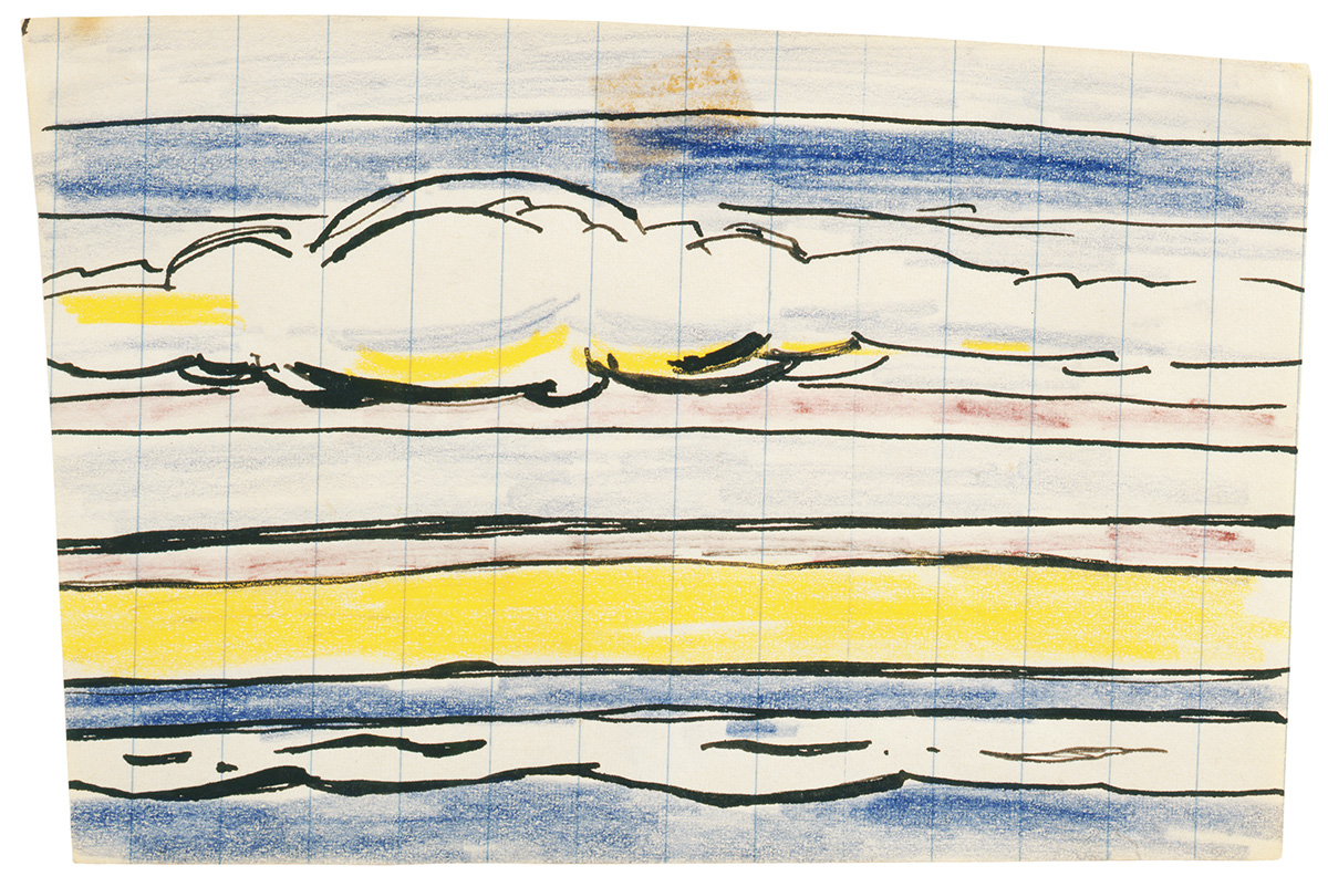 In addition to tracing from projections, Lichtenstein traced directly from source material or from his own drawings and collages onto tracing paper and Denril. Tracings that have drawing on both sides (as indicated in the media line) were used to transfer an image to another sheet or board.