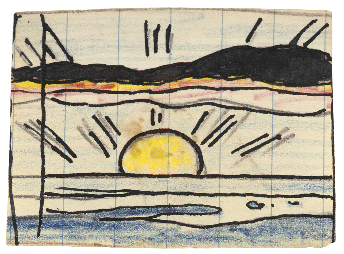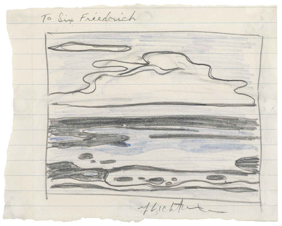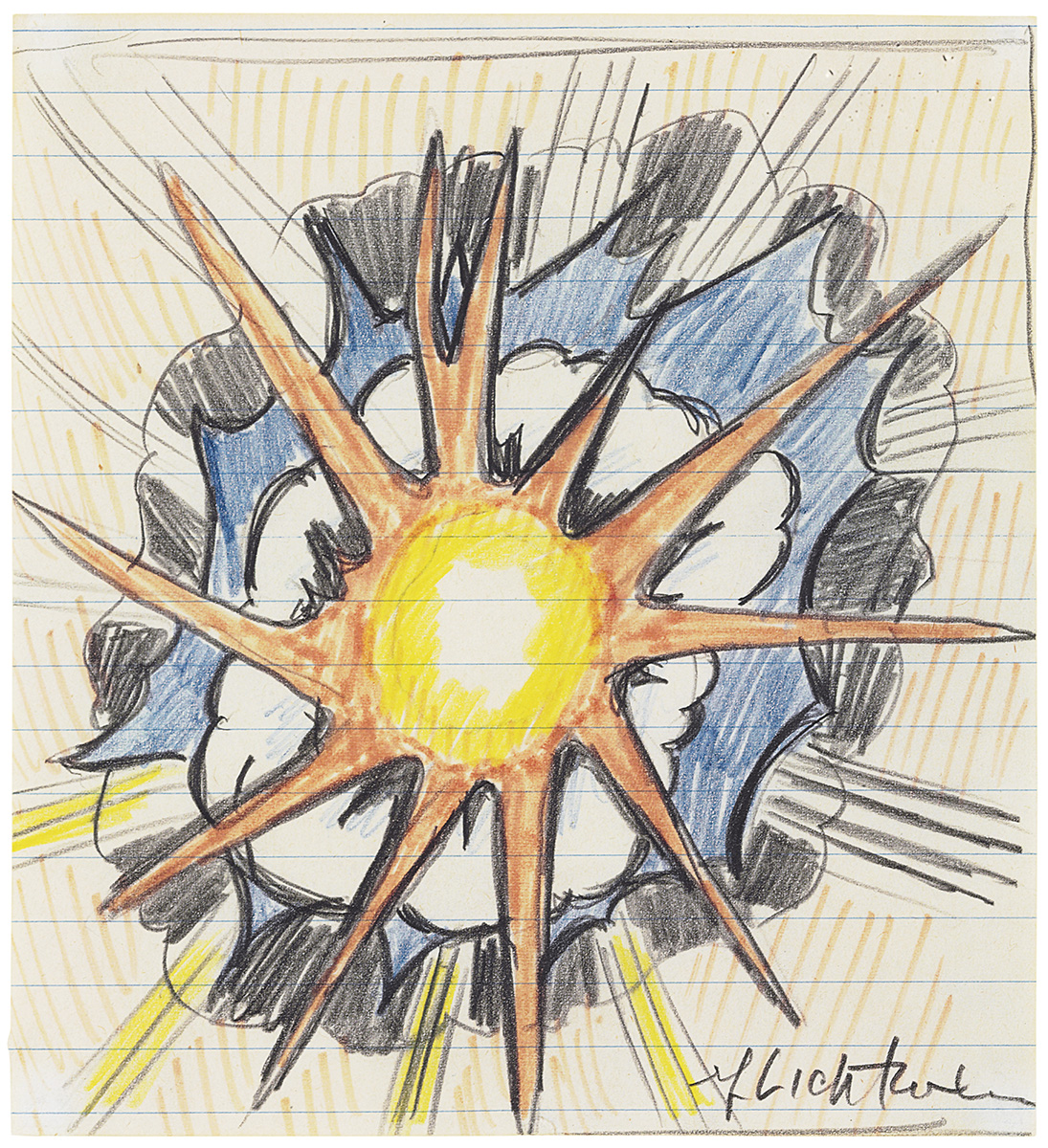 In a couple of early drawings, Lichtenstein applied an unknown resinous substance listed as resin in the entries.
