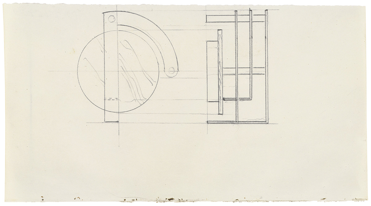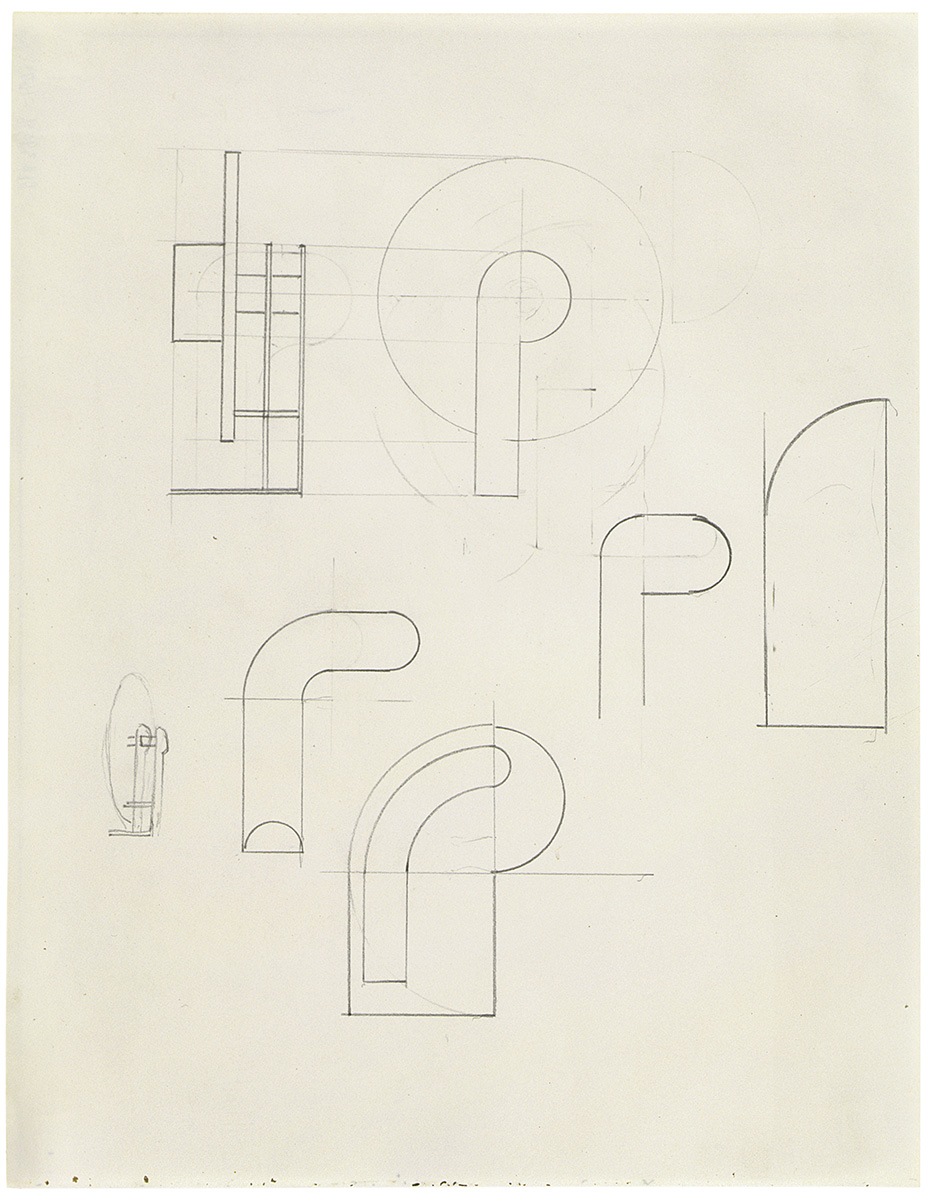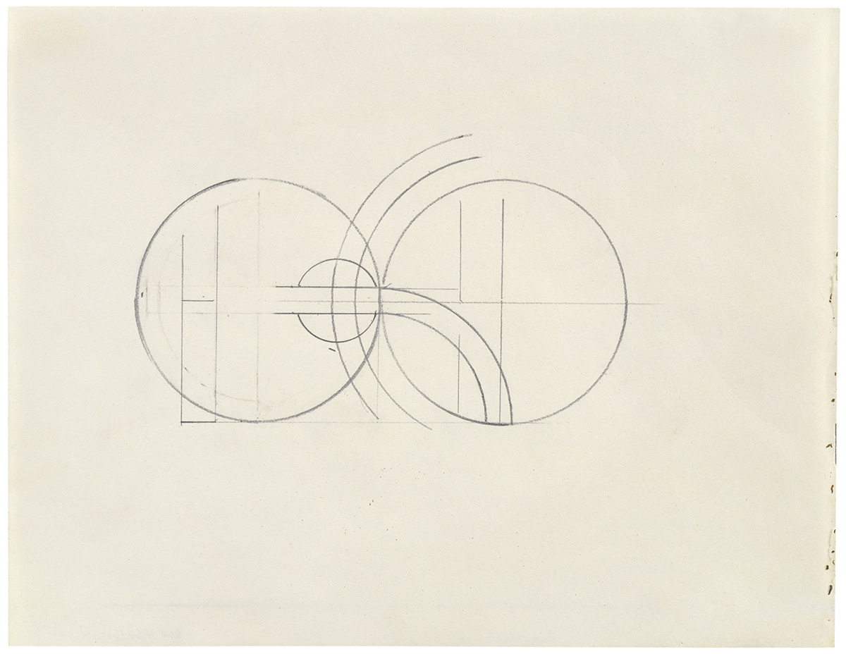 Possibly originating in sketchbook (nonextant), Modern Painting with Arc (Study), c. 1967 (RLCR 1370)