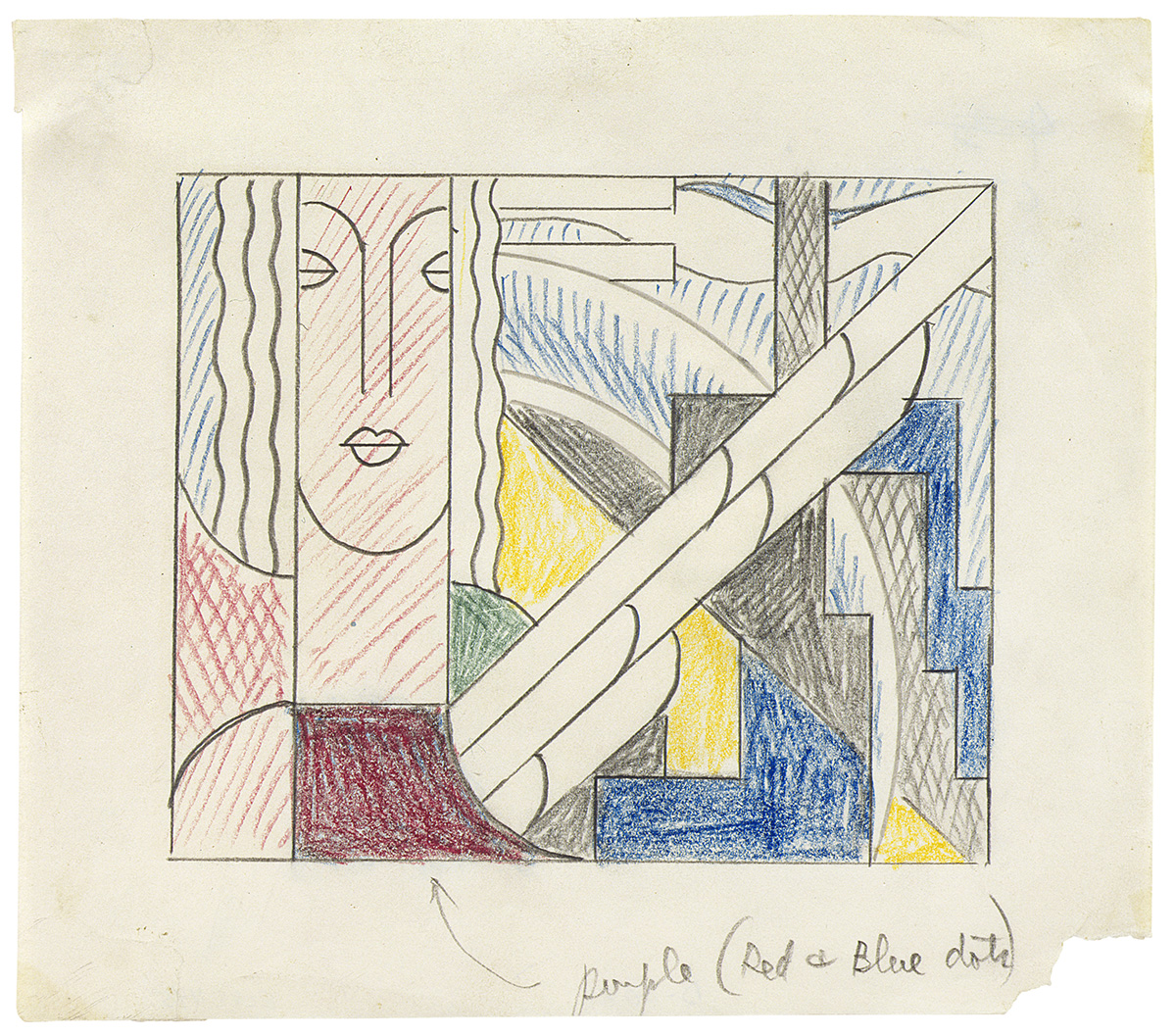 Possibly originating in sketchbook (nonextant), Modern Painting in Four Panels #6 (Study), 1970 (RLCR 1897)