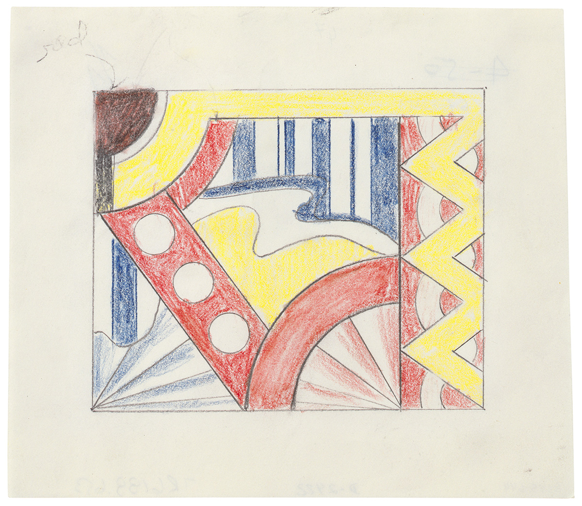 Possibly originating in sketchbook (nonextant), Red, Yellow and Blue Modern Painting (Study), c. 1967 (RLCR 1479)