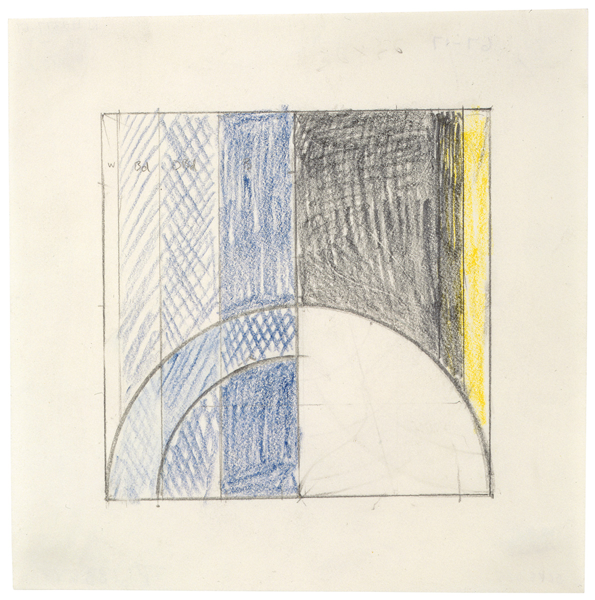 Possibly originating in sketchbook (nonextant), Modular Painting with Four Panels #1 (Study), 1969 (RLCR 1723)