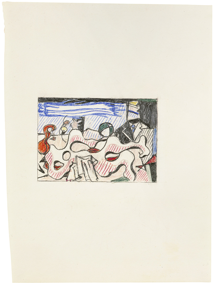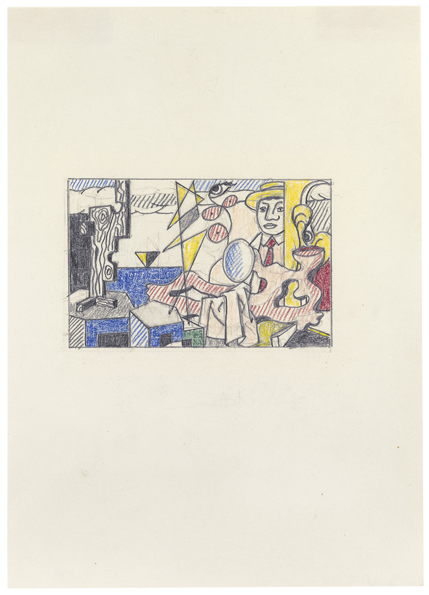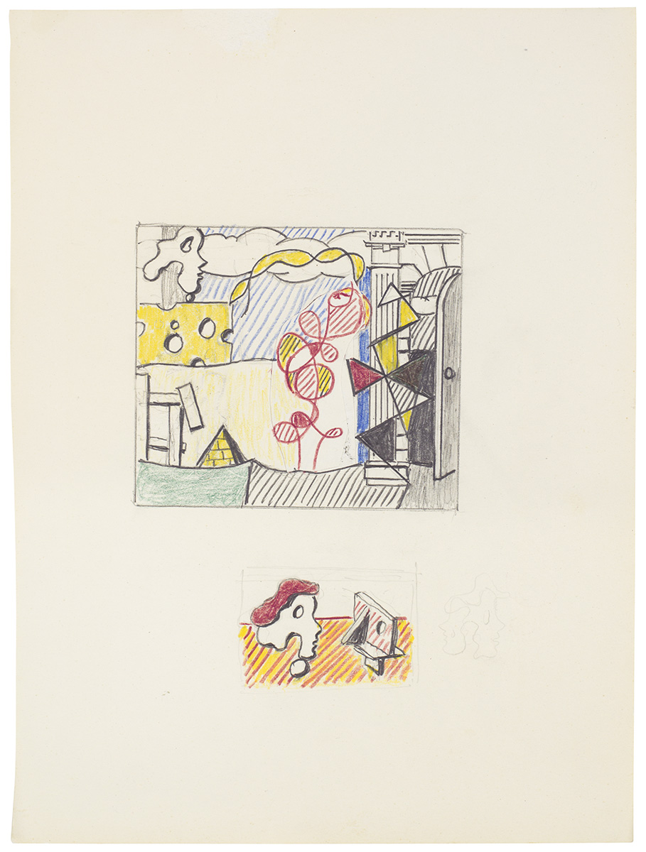 Most of Lichtenstein's known drawings were a starting point for developing ideas and compositions for paintings, sculptures and prints. In this catalogue, these drawings carry the title of the finished/final work followed by "(Study)," such as, RLCR 2560, Figures (Study). Titles of drawings with no known related final works were assigned per the methodology described in 6. TITLES.
