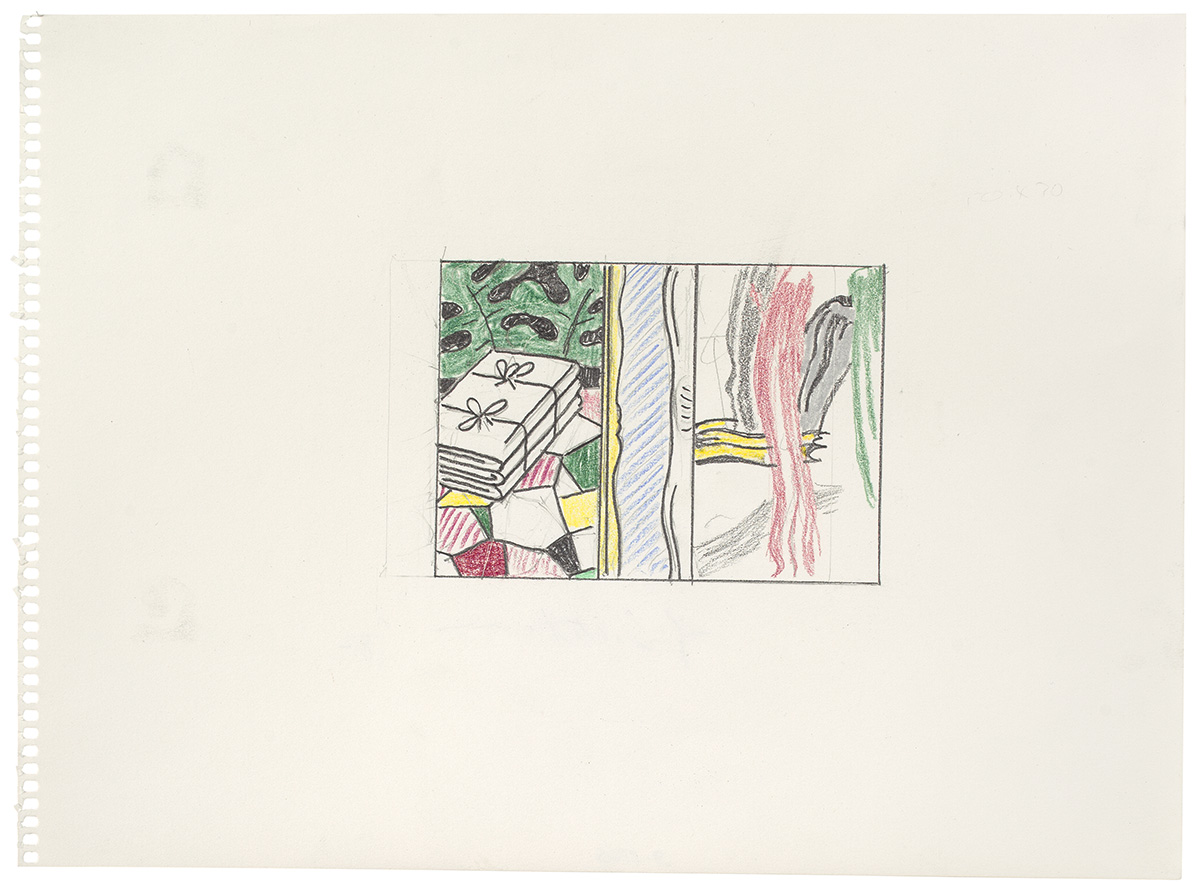 Museum of Modern Art, New York, The Drawings of Roy Lichtenstein, March 15–June 2, 1987 (not Dublin) (Rose, Bernice 1987, no. 245 p. 191 not ill.); (Kies 1987b). Traveled to: Museum Overholland, Amsterdam, July 17–September 13, 1987 (abridged) (Kies 1987a); Tel Aviv Museum, Tel Aviv, Israel, November 9, 1987–January 3, 1988 (Kies 1987a); Douglas Hyde Gallery, Trinity College, Dublin, January 20–February 20, 1988 (abridged) (Kies 1987a); Schirn Kunsthalle, Frankfurt, Germany, March 12–May 1, 1988 (Rose, Bernice 1988); Museum of Modern Art, Oxford, United Kingdom, May 22–July 3, 1988 (Rose, Bernice 1988); Corcoran Gallery of Art, Washington, D.C., September 17–November 20, 1988 (Rose, Bernice 1988).