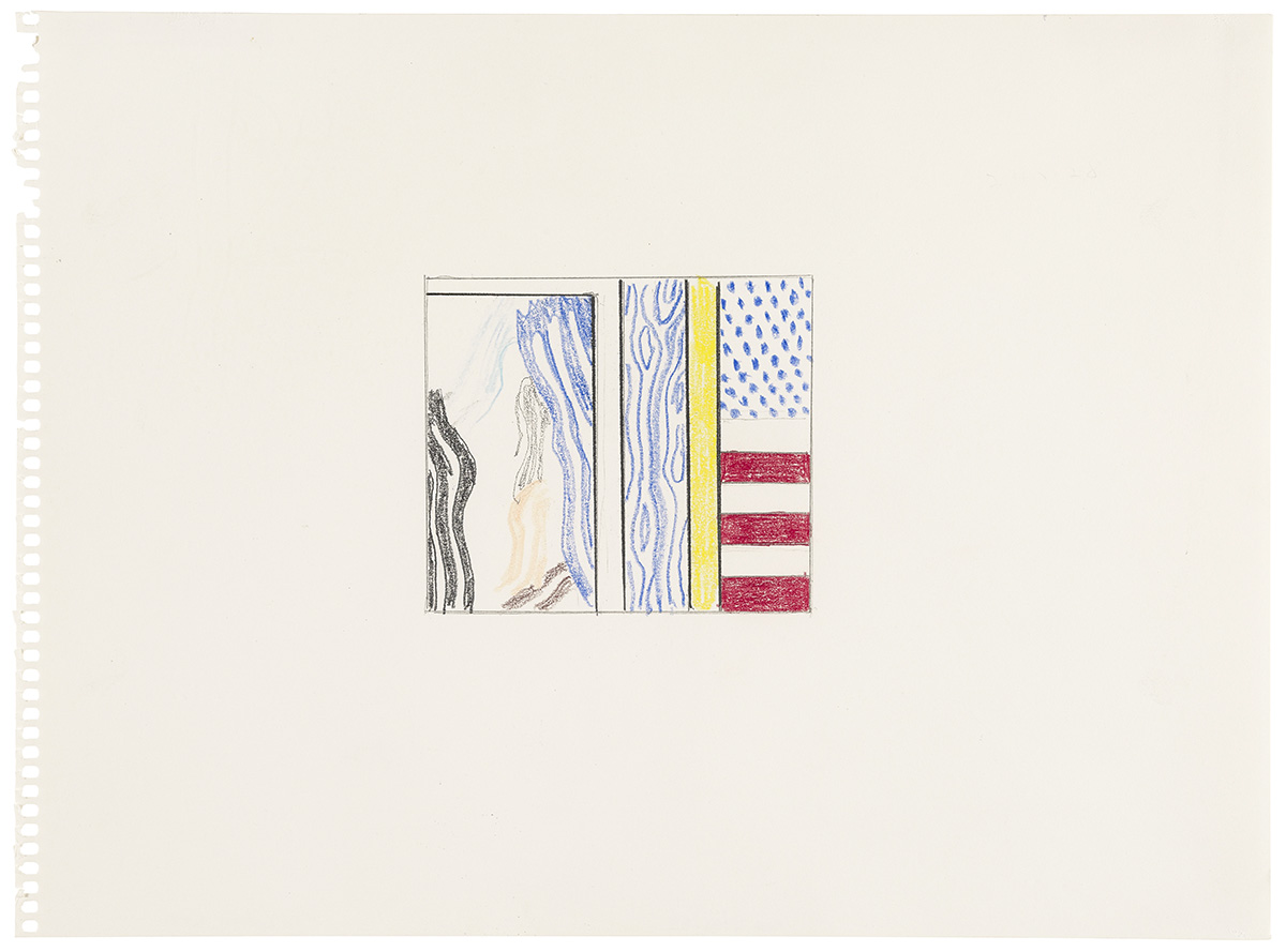 Formerly in sketchbook (nonextant), Two Paintings: Flag (Study), 1982 (RLCR 3155)