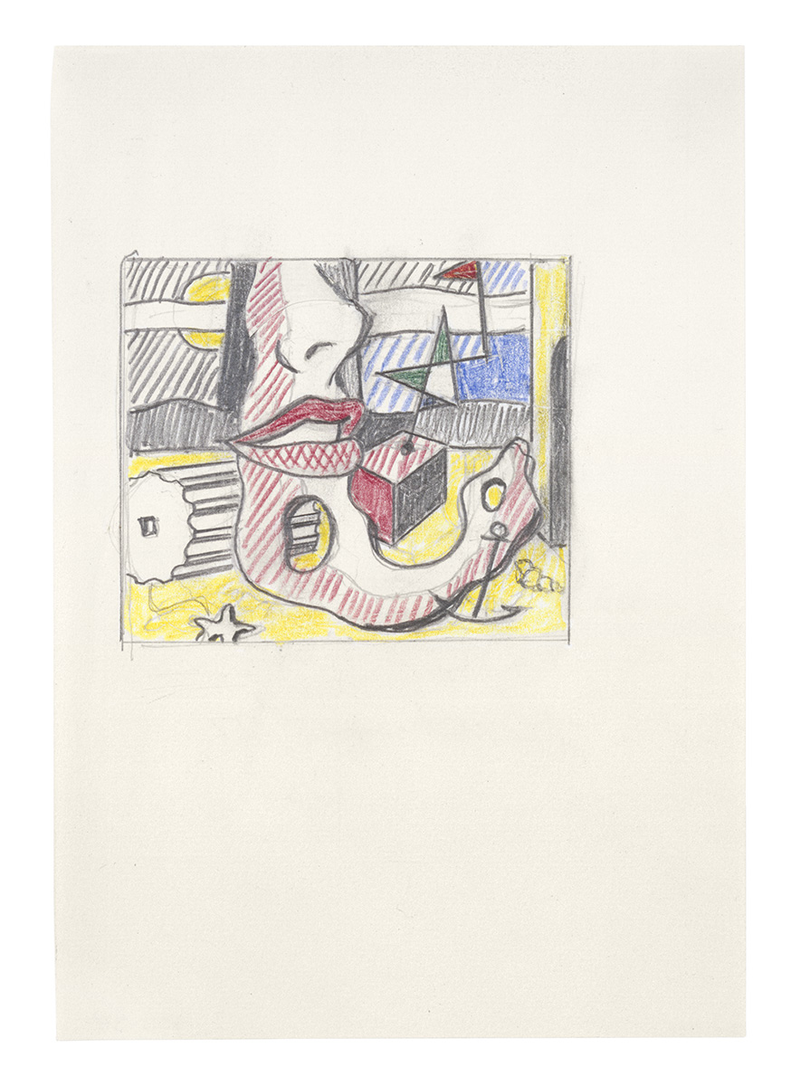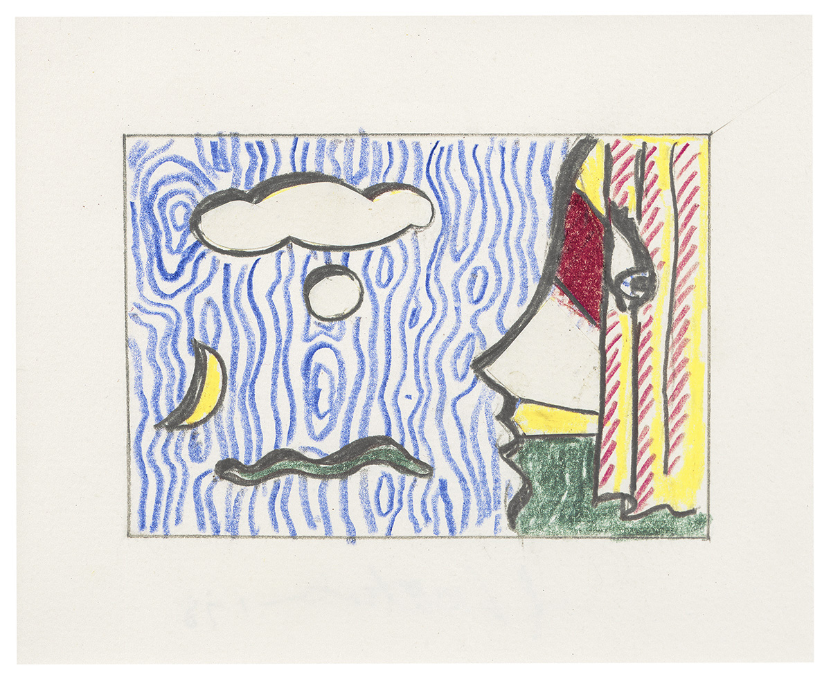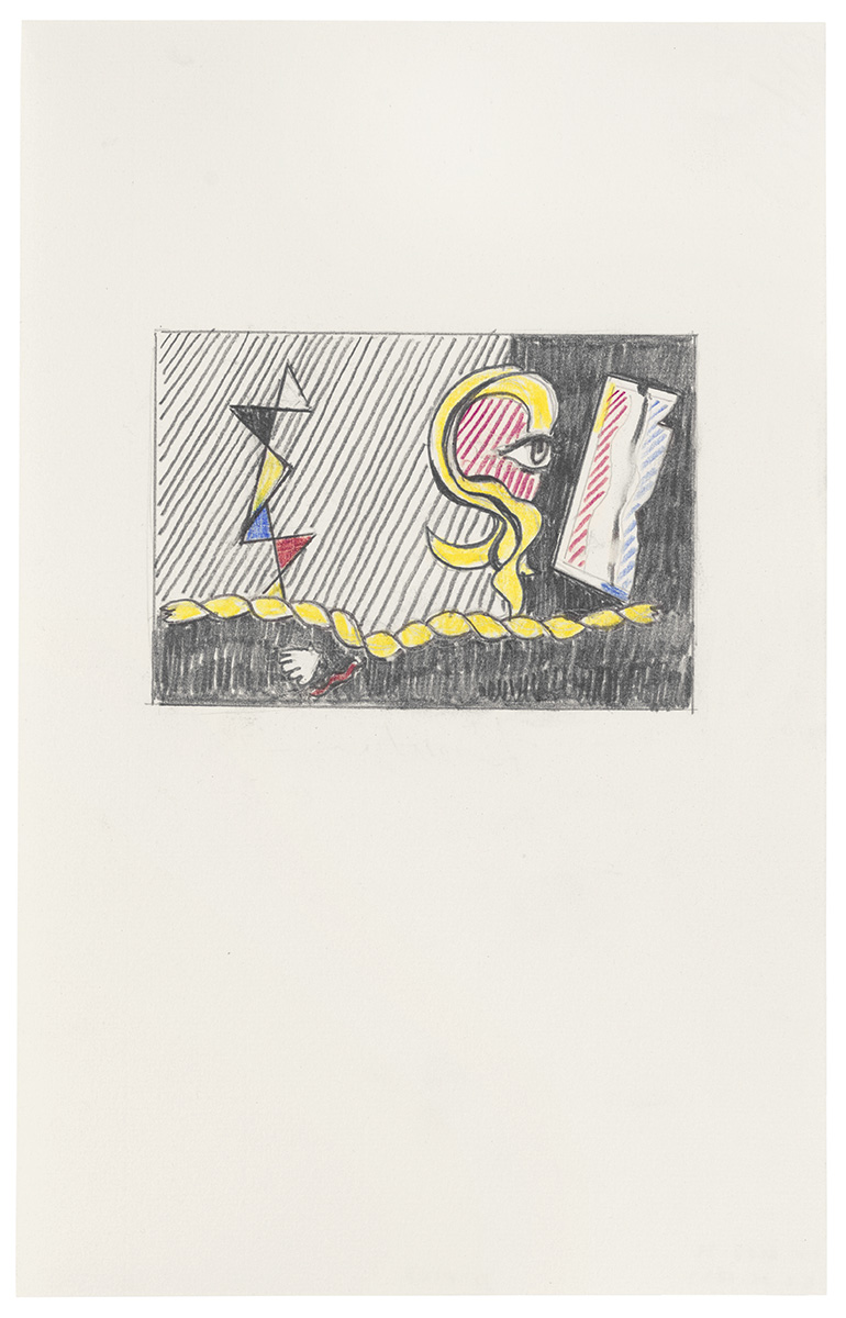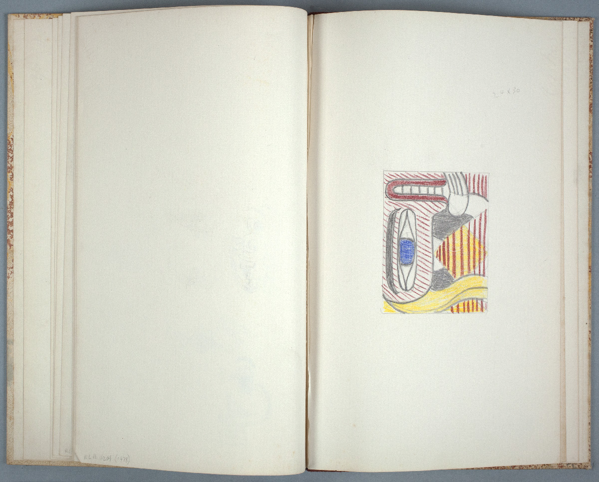 Most of Lichtenstein's known drawings were a starting point for developing ideas and compositions for paintings, sculptures and prints. In this catalogue, these drawings carry the title of the finished/final work followed by "(Study)," such as, RLCR 2560, Figures (Study). Titles of drawings with no known related final works were assigned per the methodology described in 6. TITLES.