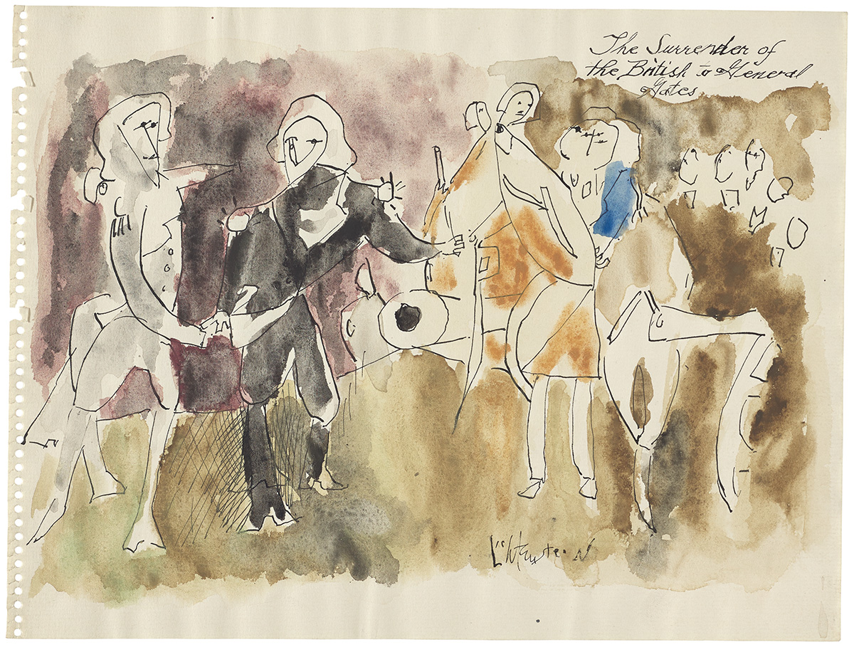Formerly in sketchbook (nonextant), The Surrender of the British to General Gates, c. 1952 (RLCR 389)