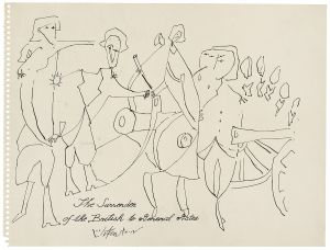 Formerly in sketchbook (nonextant), The Surrender of the British to General Gates, c. 1952 (RLCR 390)