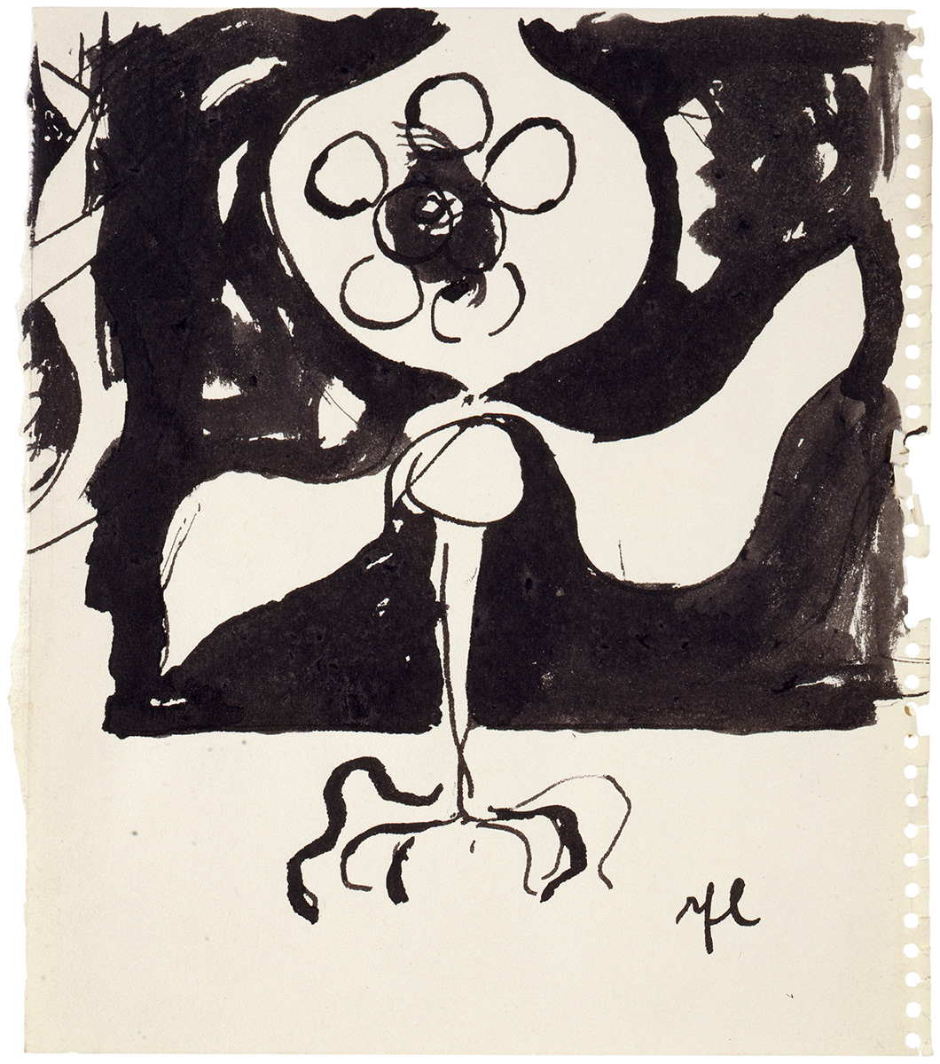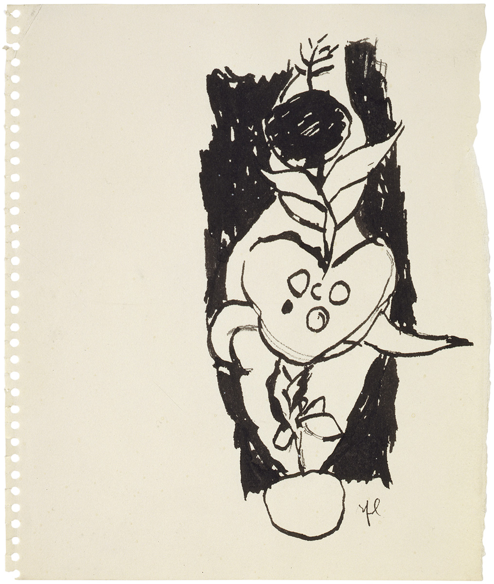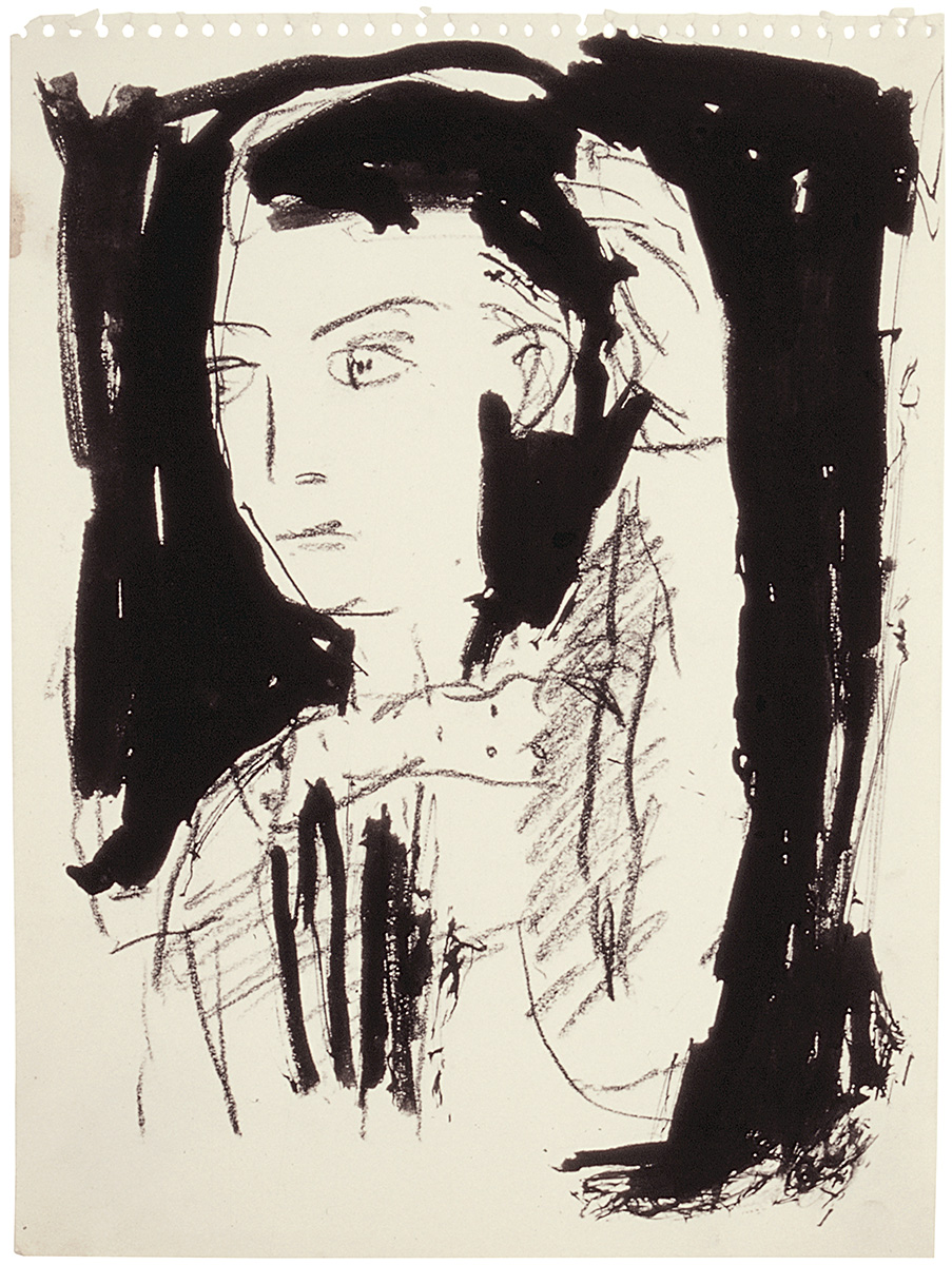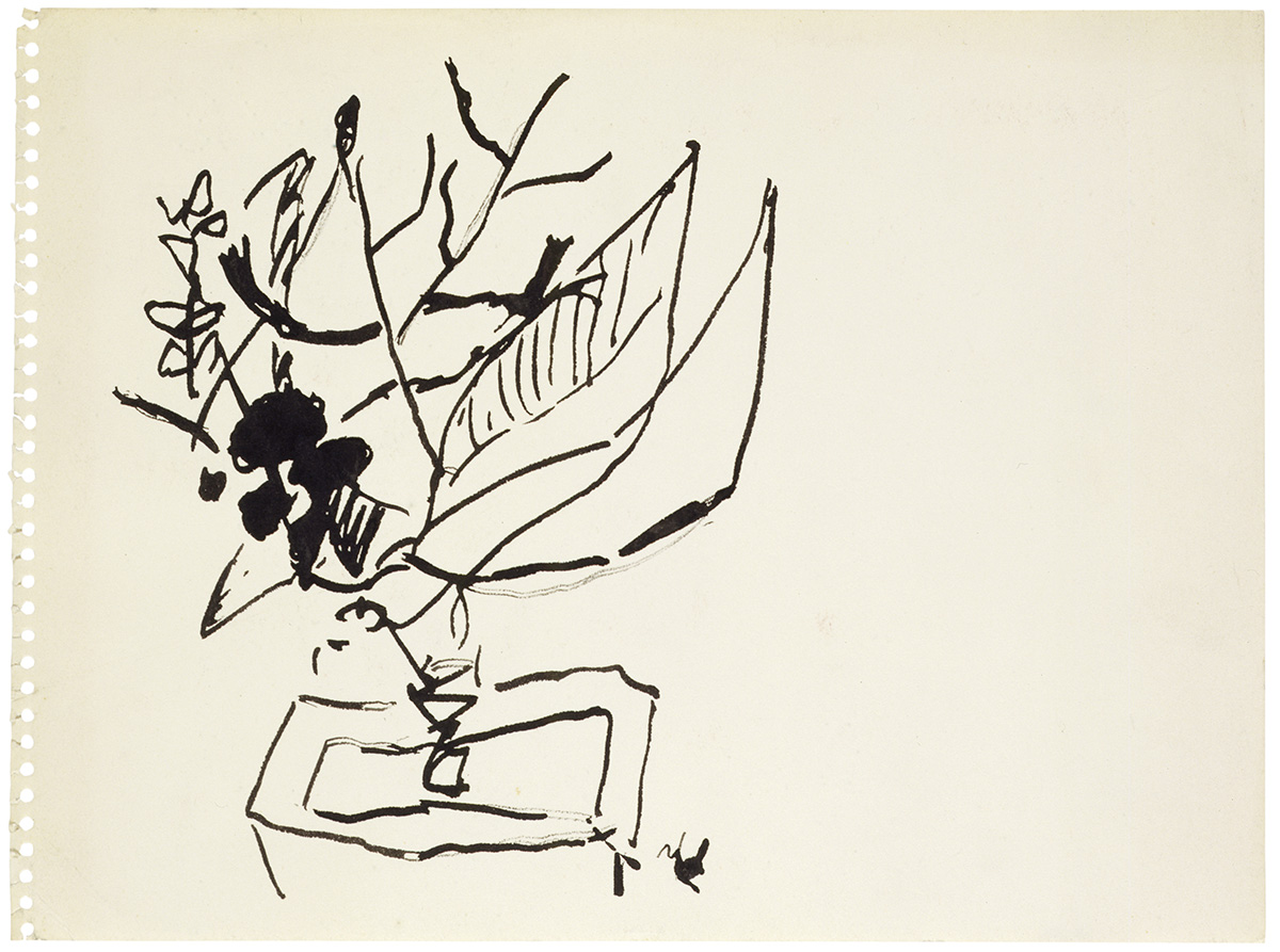 This drawing is reminiscent of a set of Twardowicz photographs of Lichtenstein of c. 1950 (see Archival Material). Date per comparison to sheets likely from the same nonextant sketchbook dated 1949 and 1950.
