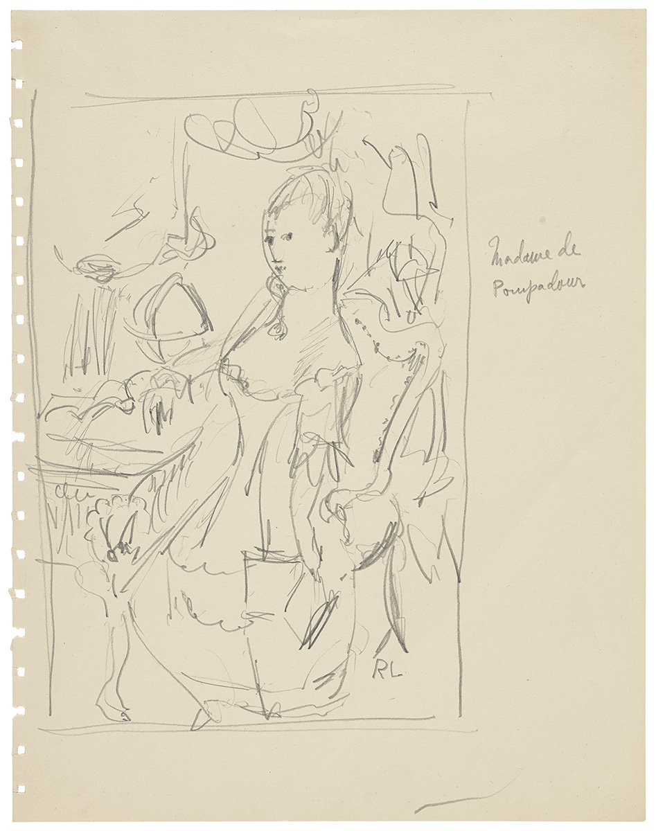 Formerly in sketchbook (nonextant), Madame de Pompadour, c. 1957 (RLCR 499)
