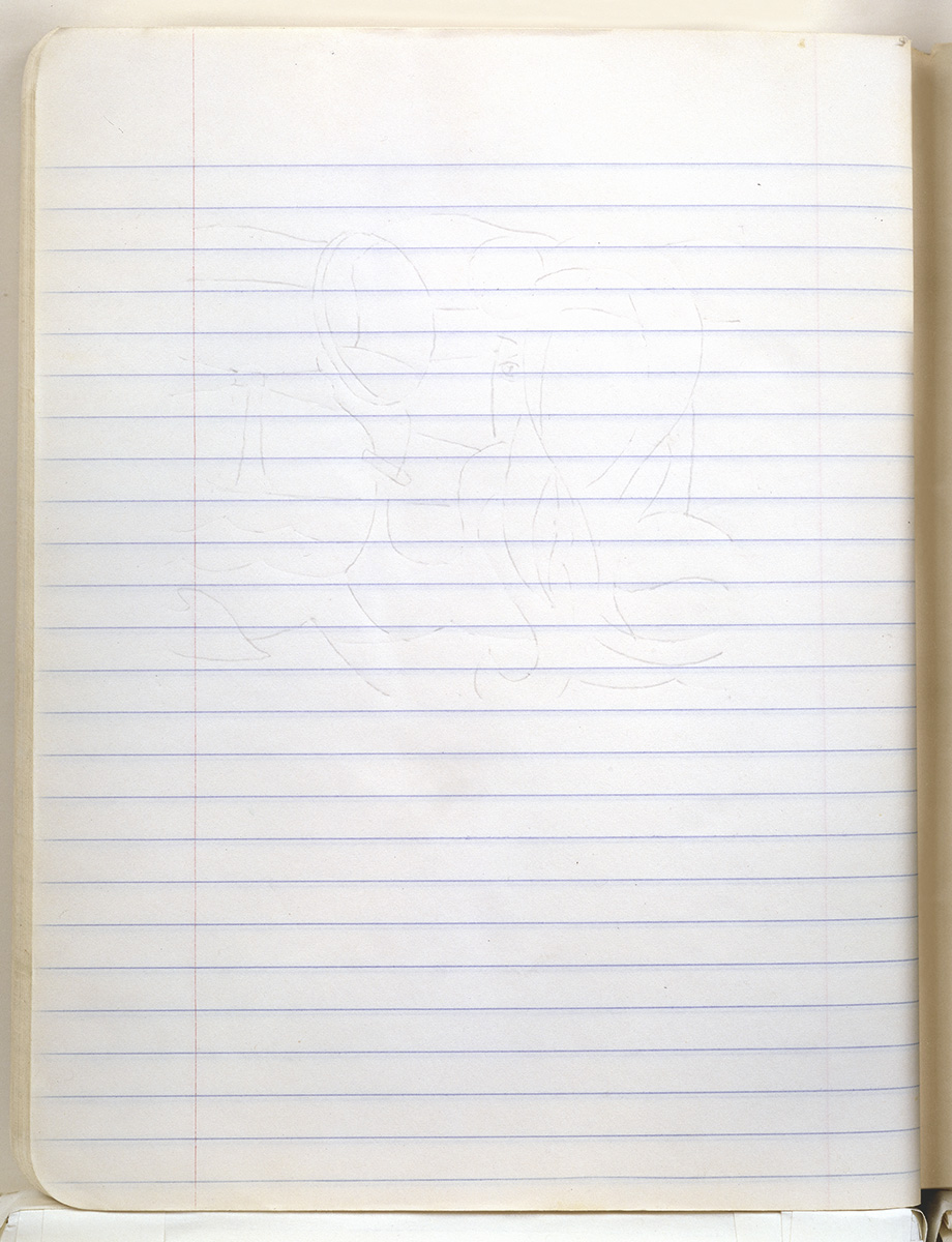Semester Composition Notebook, Transfer drawing in this book c. 1977 (RLCR 2655). Page 2v
