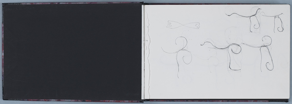 Subjects in this sketchbook are wide-ranging, including drawings for RLCR 3594, Brushstroke Chair and Brushstroke Ottoman, a commissioned Dreamworks logo design, the Chinese Landscapes works and the Brushstroke Still Life works, among others.