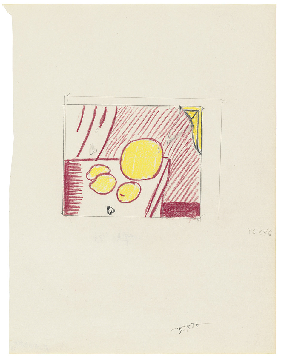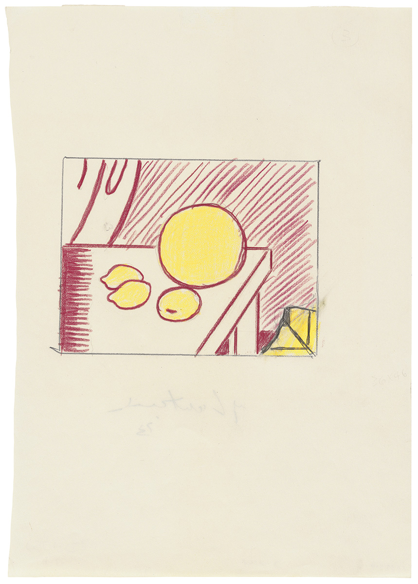 Formerly in sketchbook (blank/used), Fragmented Painting of Lemons and a Melon on a Table (Study), 1973 (RLCR 2169)
