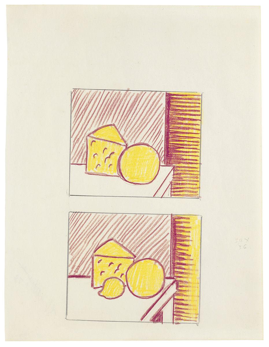 Formerly in sketchbook (blank/used), Cheese and Fruit (Studies), 1973 (RLCR 2158)